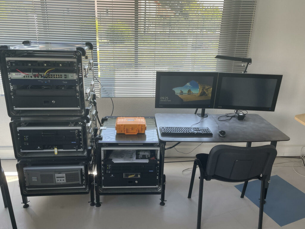 Ce projet avait pour objectif une mini infrastructure informatique portable avec son pare-feu, QNAP, PC et onduleurs. Cette station météo était vendu avec une parabole qui permettait la prise d’information météo en pointant vers un satellite météorologique.