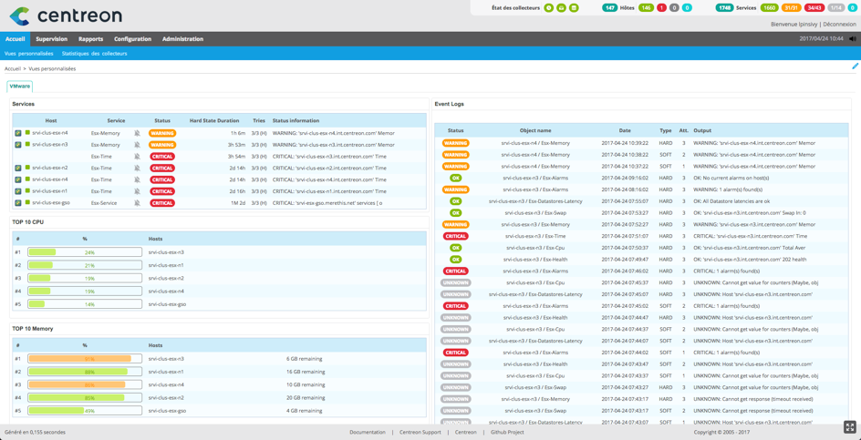 Centreon est un logiciel de supervision informatique qui tourne.