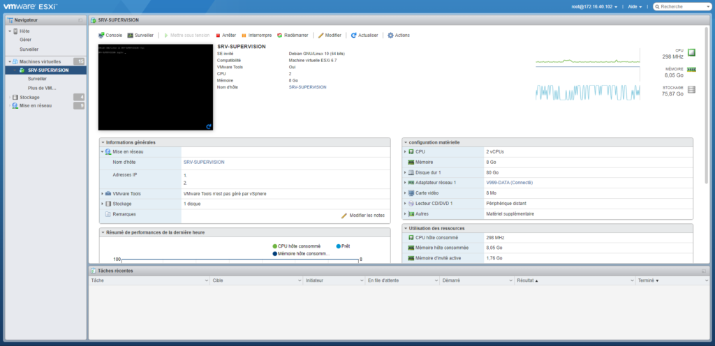 Pour ce serveur de supervision situé sur notre deuxième ESX nous avons choisi de partir sur 8 go de RAM et un stockage de 80 go. Même si Zabbix ne nécessite pas autant de ressources, nous avons préférer nos précaution en prenant large.